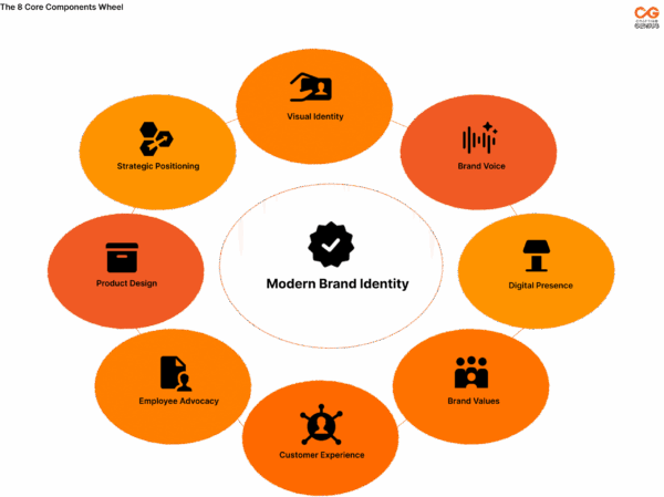 While branding traditionally focuses on visual elements, today’s identity revolves around holistically integrating strategy, user experience, values, and even culture. Let’s go through the eight key components shaping brand identity in 2025: