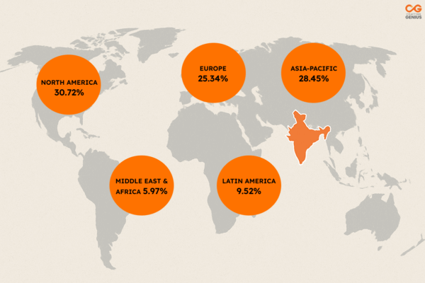 Regional Adoption: Then comes Asia Pacific with 28.45% and Europe at the 3rd place by having 25.34%, as represented in Exploding Topics Statistics Blog.